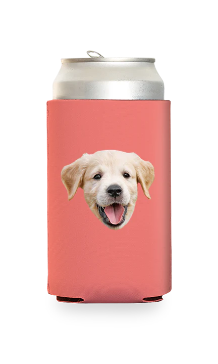Put your dog, cat, face, or drawing on a custom can cooler!